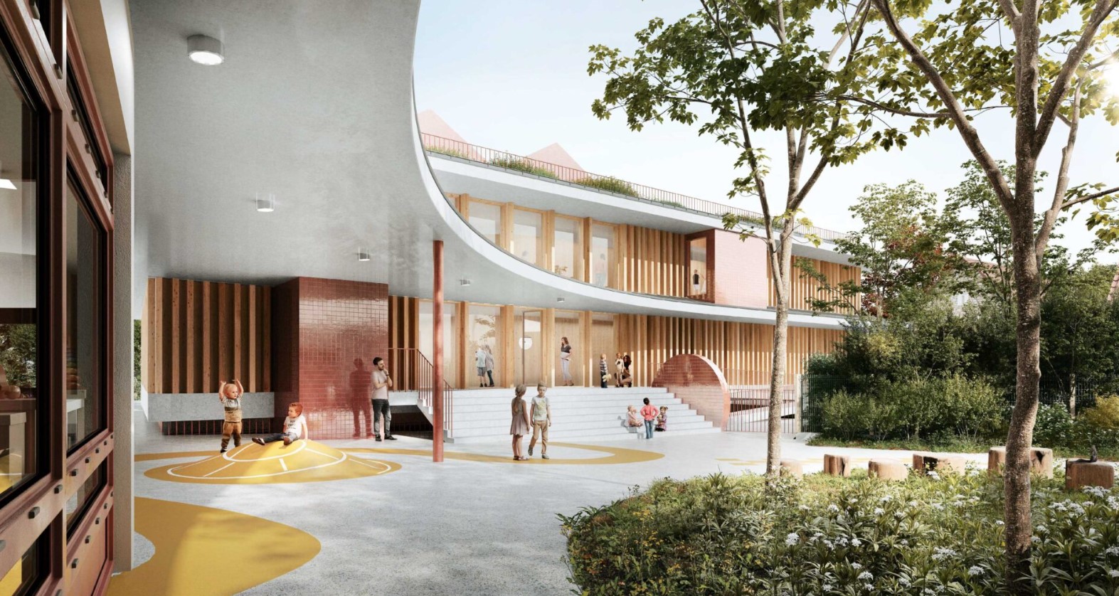 Extension de l’école Prévert, vue depuis la nouvelle cour©LT2A Architecte
